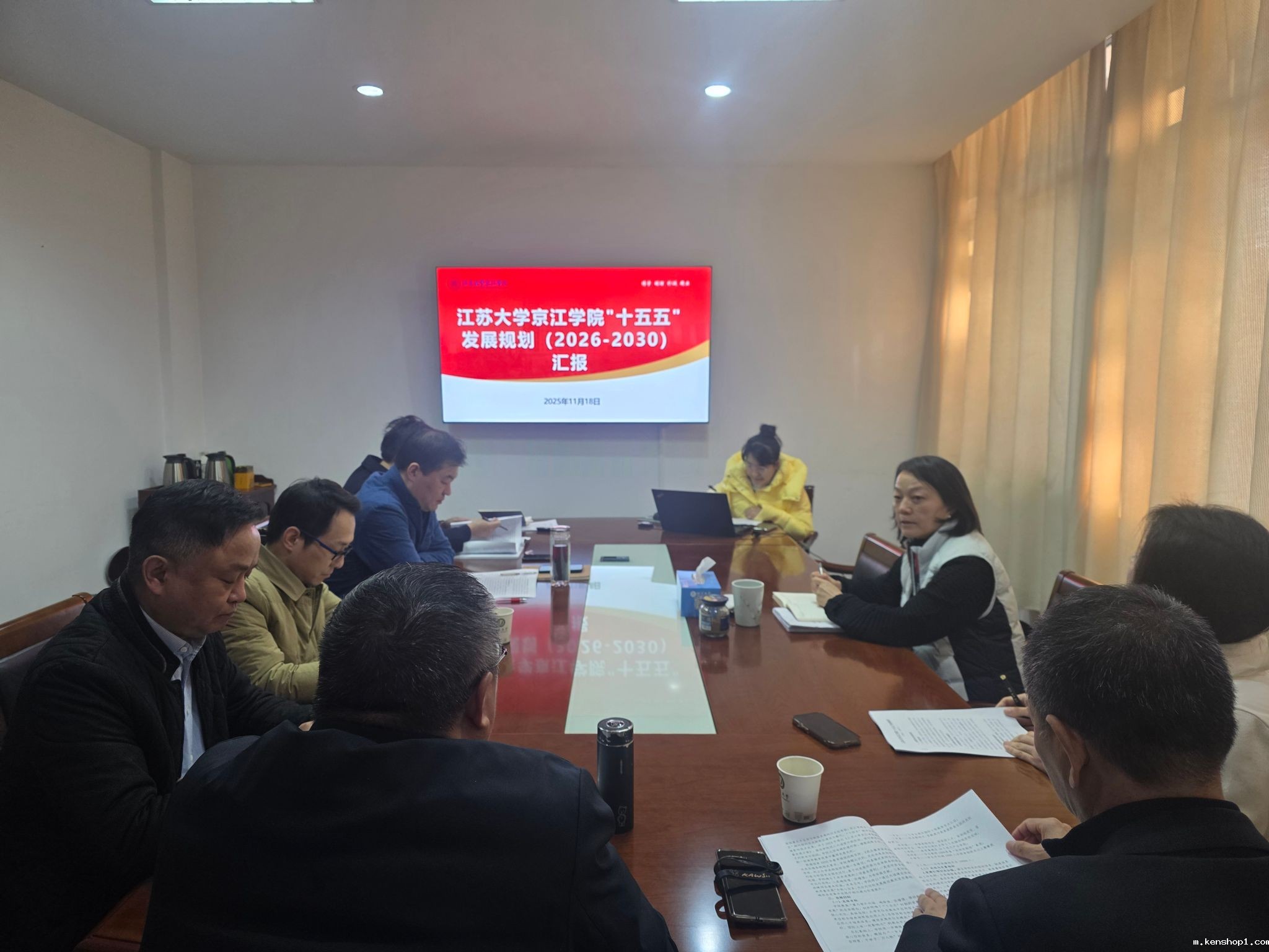 11月18日,江苏大学副校长陈红在江苏大学行政1号楼309会议室听取京江学院“十五五”发展规划编制进展汇报,京江学院全体院领导、相关职能部门负责人参加会议。